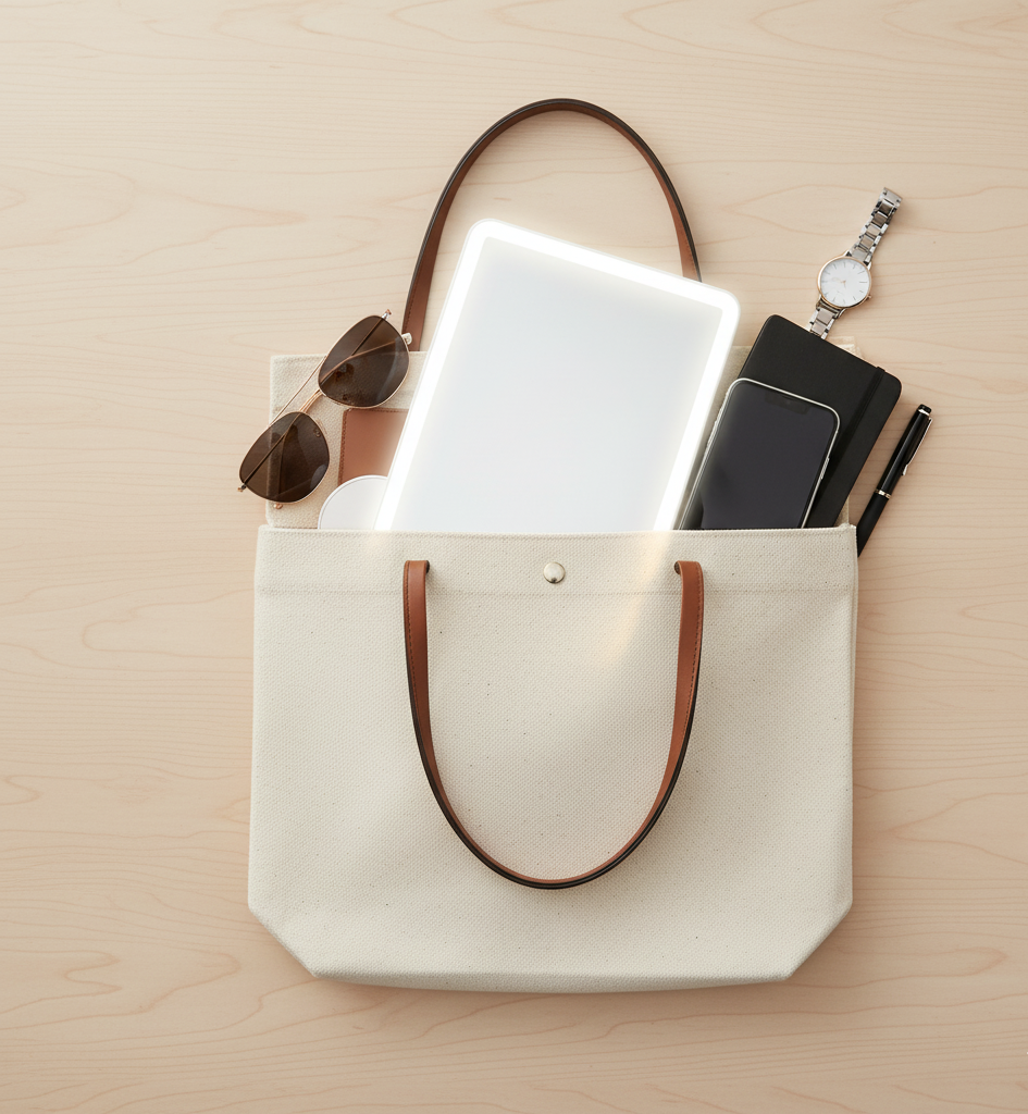 קלה יותר מהטלפון שלך, נטענת בקלות ונכנסת לכל תיק. אין צורך בכבלים או סוללות רק תאורה מקצועית שאת לוקחת איתך לכל מקום.